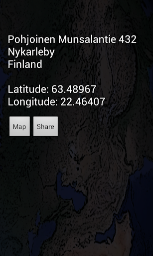 - Share address and coordinates via sms, e-mail, facebook, twitter ...