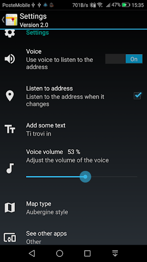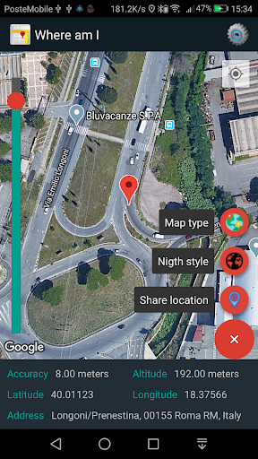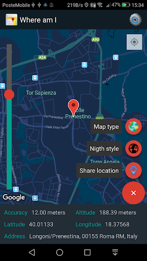 From anywhere within the application, you can easily share the current location data through your favorite messaging application. Your friends will receive GPS coordinates and a link on Google Maps indicating your location. In addition, you can copy the GPS coordinates to the clipboard and paste them on map, chat or e-mail applications and drag it to the new location.