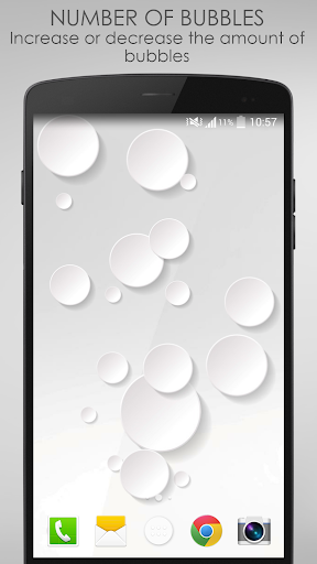 White Bubble is a fun bubble live wallpaper where you can tap to pop bubbles on your Android phone or tablet. White Bubble gives you lot of options: choose between lot of colored backgrounds and customize bubbles as you want by determining the direction, speed, number and lot of more options. Also you can play, pop as many bubbles you can and the points will be shown in the background (you can Hide or Display the point counter at the Settings).