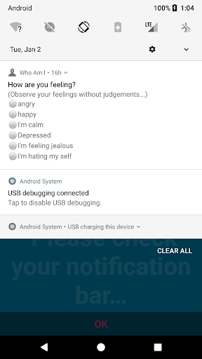Help people query and investigate into him/herself, possibly discussing with other people sometimes. The first version sends notifications per hour asking the question “How are you feeling?” with several options to choose from,