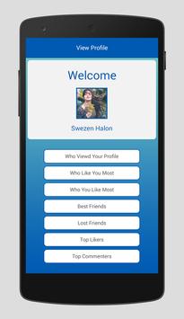 Do you want to know who is looking at your Facebook profile? By this app you can know who is watching you on Facebook and who is checking your Facebook profile. This application allows you to see who is interested to you in Facebook. You have possibility to see the list of friends based on the latest visit.