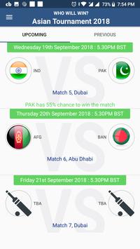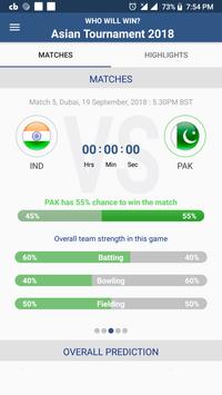 Do you want to know who will win the next upcoming Asia Cricket Clash 2018 match? This is the best Asia Cricket Clash prediction app for all Asia Cricket Clash 2018 matches. All predictions are by cricket ODI match experts based on years of statistical data as well as the latest cricket news and player info on different teams.