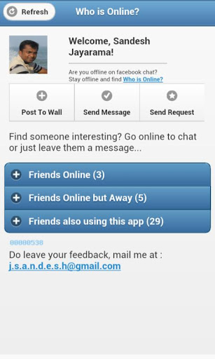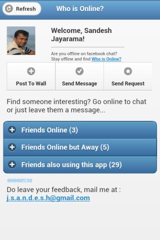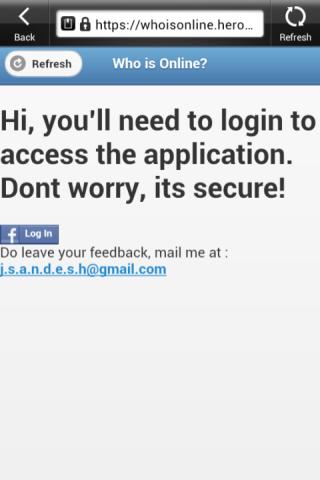 Who is online is a simple facebook app to quickly let you know which of your friends are currently online.While you use this app, you can choose to remain offline on your facebook messenger, thus not letting any of your friendsknow that you are infact online.Useful if you want to keep a watchful eye on your kids facebook activity.