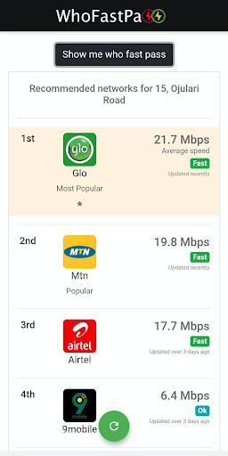 WhoFastPass helps you find the network performances of various internet service providers in any location so that you can make the important choice of which network to patronize based on where you live, study, or work.