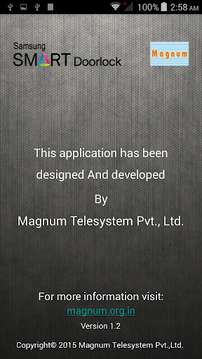 Wi-Fi Control For Samsung Digital Doorlock mobile app lets you control the Digital Door locks installed at your premises over your Wi-Fi network with your smartphone if you use Samsung SMART Door locks. Samsung Door lock is a free application designed by Magnum Telesystem Pvt., Ltd. specifically for Samsung Digital Door locks.