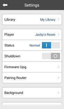 2. Select Android devices or servers music library in "Settings", as well as choose your music playing device.