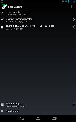 Wi-Fi PCAP Capture uses an external USB RTL8187 Wi-Fi card and does not require a custom ROM or root privileges.
