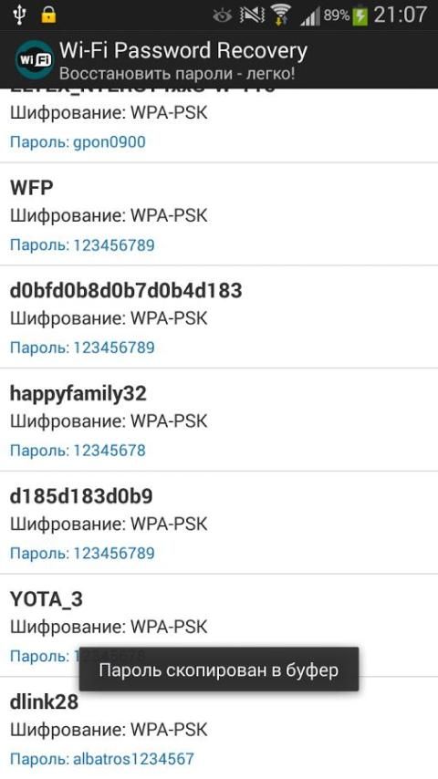 In order to copy the password, simply click on the network you are interested in (ssid).