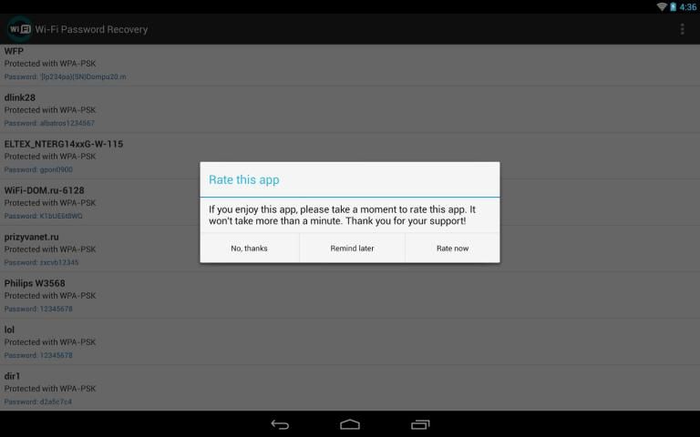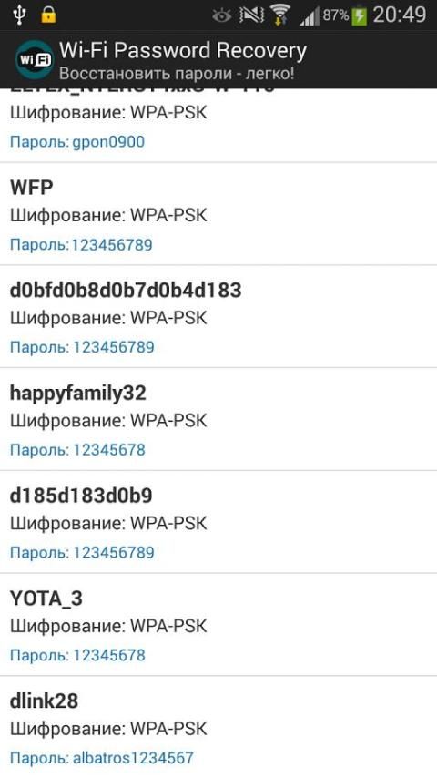 This application does not crack Wi-Fi passwords points, and recovers passwords from Wi-Fi to which you connected!