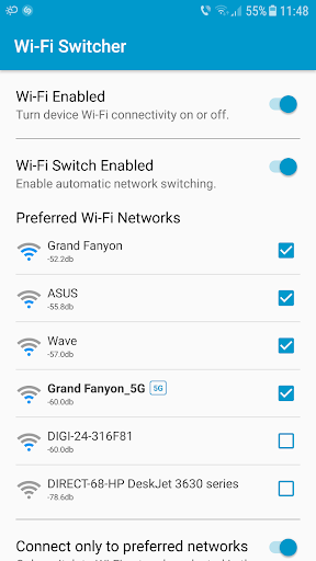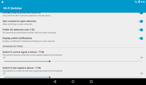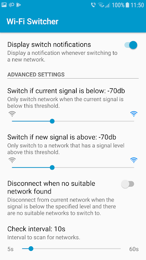 The app constantly monitors Wi-Fi network levels and intelligently switches to a better network whenever the current signal becomes too weak.