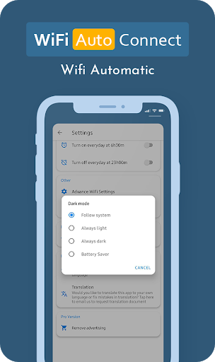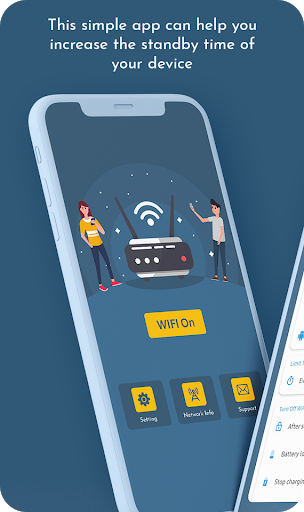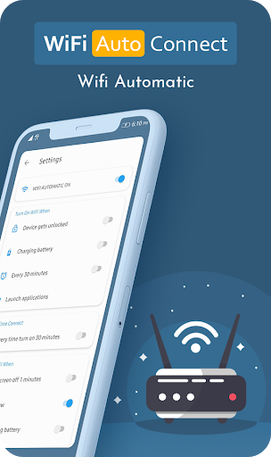 WiFi Automatic or Wi-Fi Auto Connect app can help you increase the standby time of your device. WiFi Automatic disable your WiFi Radio when you don't need it and thereby lowers the battery consumption. Wi-Fi Auto Connect app helps you Reconnect Wi-Fi and Auto Stop WiFi Connection, Mobile Hotspot automatic.