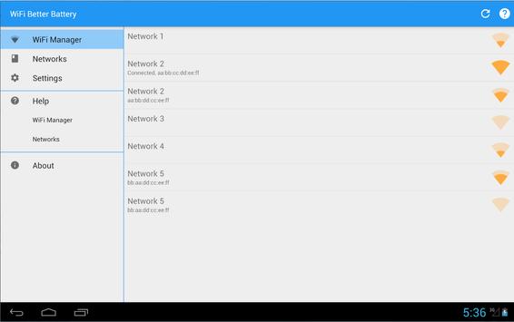 WiFi Better Battery prolongs your phone or tablet's battery life by making sure WiFi/WLAN is only turned on when you need it. When you leave the range of your WiFi network, your device's WiFi is automatically turned off (after a short delay to allow for quick reconnects after a connection hiccup). As soon as you get back in range, your WiFi is turned back on and you are automatically connected back to your favourite network.