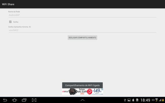 This app helps you to easily share the phone's internet connection by activating its WiFi router with just one click!