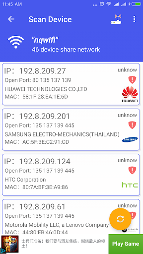 2. You can see your LAN users who secretly connect to your network! And scan its open port. Prompts you to prevent the closure of those who do not often use the port, so as not to be hacked!
