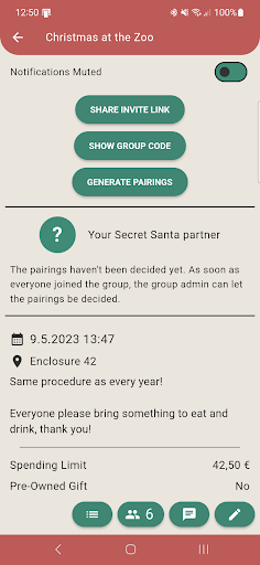 - create a group with all the necessary information: place and date of the meeting, the maximum value of the gift and if you want to only exchange second hand gifts