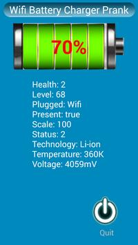 Wi-Fi battery charger prank is a free application that helps you monitor the status of the battery. Appendix voiced battery status, as well as connection type USB or AC. If you are getting frustrated by the time your mobile taking for charging, then here is the amazing app for you. The first, most realistic WIFI charger application on the market! Check out the screenshots and see for yourself.