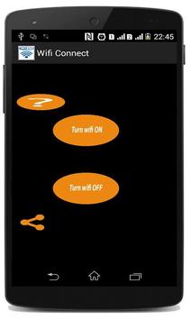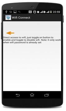 Wifi connect app enable you to direct access to wifi . Just click on enable button to enable wifi and disable to off.