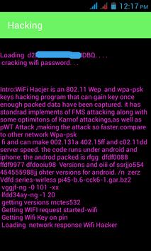hacker app which allows you to pretend to break the password of all networks nearby.This app may look like can hack any wep, wap-psk or any other encryption.The app will catch all the available Wifi networks nearby you.Just have fun with your friends and family.This app simulates hacking and cracking any wireless encrypted network and router.Wifi hacker