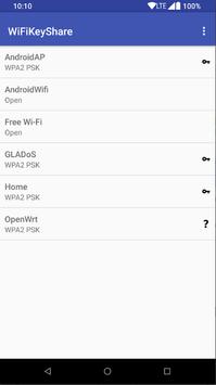 Android does not let apps read the saved Wi-Fi passwords, so you will need to enter them manually for each network you want to share. However, the passwords will automatically be retrieved if WiFiKeyShare is given root access.