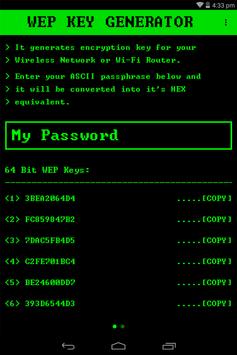Wifi Password Generator Pro is an offline wep key generator for your wireless router. It helps you to generate 26 HEX digits WEP key that can be used to secure Wi-Fi network. You can now generate keys in the classic command prompt interface.