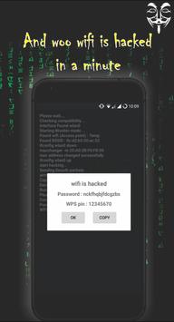 Wifi password Hacker is just a prank app for fun that gives you a feel to hack the wifi network , this app is not really hack the any wifi network , its an wifi hacker prank app to prank all of your freinds and family members.It can pretend hacking into secured wifi network like WEP, WPA2 or AES encryption and so on ..