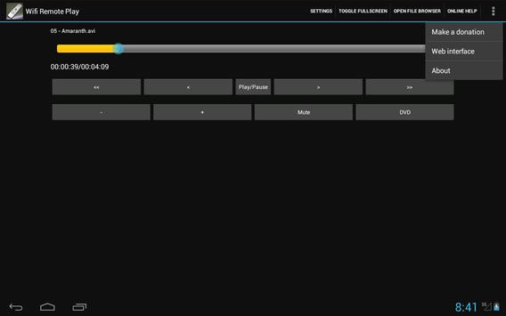 Wifi Remote Play is a remote control app for the video players Media Player Classic (MPC) and VideoLan Client (VLC), allowing you to control it over a Wi-Fi network. Completely free, no ads!