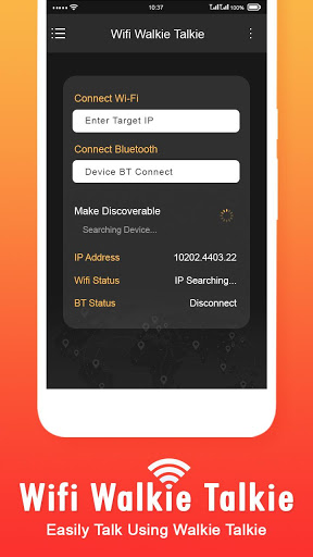 Wifi Walkie Talkie - Bluetooth Walkie Talkie is also a channel scan system that allows user to search all of the channels and see if there is any body talking on any channel. So you can search the channels to see if there is any body talking and start talking to Turn your phone to a Wifi Walkie Talkie - Bluetooth Walkie Talkie radio and communicate with your mates & family. This app allows you to make free phone calls using the same wifi network connection.