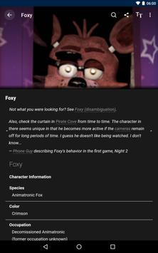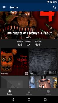 Fandom's app for Five Nights at Freddy's - created by fans, for fans. The Five Nights at Freddy's app always features highly-accurate, real-time information from Fandom's passionate community of fans. You can expect to see hundreds of pages of content created by fans just like you. Find articles on video games, characters, locations, game mechanics, chapters, guides and much, much more! No other app offers this combination of companion features that allow you to: