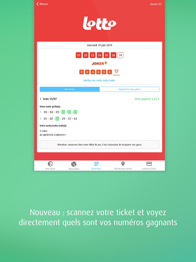Dans cette version, nous avons mis à jour les écrans de la fonction de scan. Vous pouvez désormais comparer encore plus facilement vos propres numéros avec les numéros tirés. De cette manière, vous savez juste après le tirage si vous avez gagné.