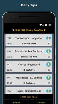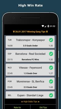 Winning Gang Betting Tips gives users expert betting tips,predictons from an experinced team. Our team analysis matches and gives best possible sure bets and high odds betting tips everyday. This app is absolutely free and our bet analysis team has realy high success rate. We provide vip betting tip services for zero charge. We give football , basketball , volleyball and tennis betting predictions.