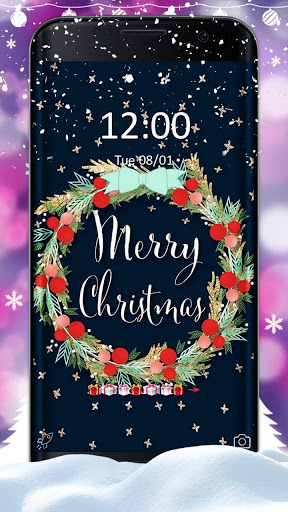 ✻ pet Santa lock screen with 3D Winter feast snowflakes champagne wallpaper