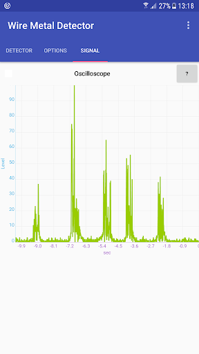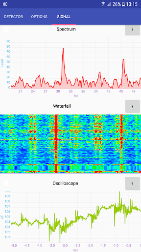 Impressive! I tried the metal wire mode and it works well. Of course, noise dominates if distance is large or current is low. Therefore, accumulation of the signal over time can improve sensitivity. Also, we can use stability of phase and phone's clock to further improve signal to noise ratio. I am not sure if frequency spectrum is computed correctly: it is maximal at about 40 Hz while I expected 60. But who knows, maybe the app discovered a problem in my power line! Also, I don't understand why the x axis ends below 50 Hz, hiding the frequencies used by the app to detect wires.