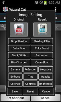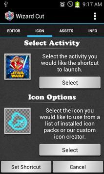 Wizard cut lets you create custom shortcuts for any launcher. Are you tired of an apps ugly icon? Now you don't have to settle for other peoples mistake. Use Wizard Cut to design your own icon. With this app you can create shortcuts of different sizes and styles. Use your images and our masking system to create framed pictures or uniquely shaped images. You can crop images from your gallery, camera, or from our texture packs. Wizard Cut supports multi-layered icon creation with the ability to merge layers. You can further customize your icon with our image editor that can be used for tint, brightness, saturation, and many more options. You can create shortcuts in a wide range of sizes. Everything from 1*1 to 4*4 and any combination in between. We supply a wide variety of assets packs to use with Wizard Cut. This app has the ability to save and restore your creation as well as share your icons with friends or Facebook.