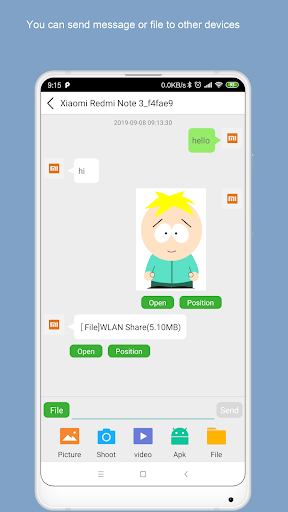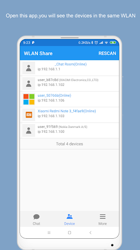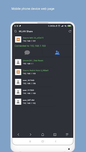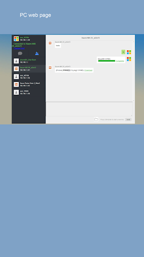 3.Any device installed this app or open website can see the device list in this WLAN and can send message、file or folder to other device.