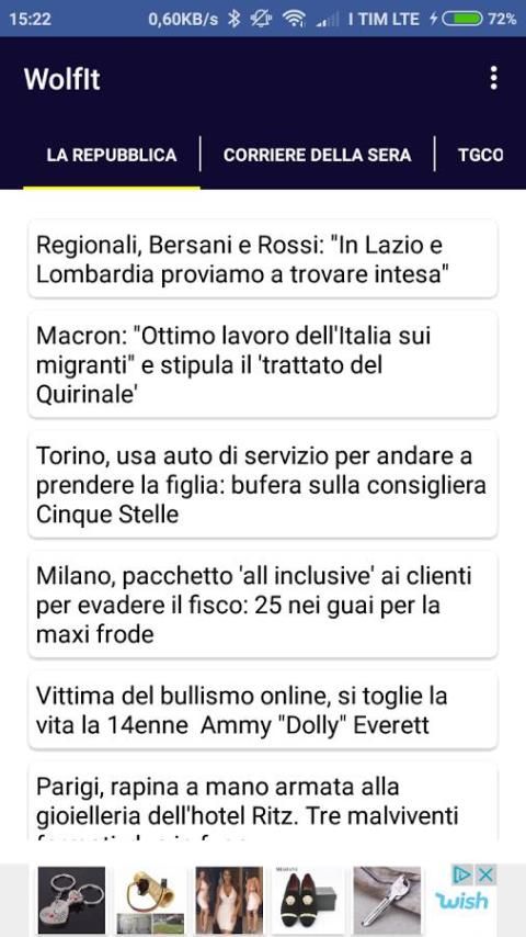 Wolfit, आसान जल्दी और आसानी से एक नया तरीका अपने समाचार और अपने Android डिवाइस के लिए सीधे अपने समाचार पढ़ने के लिए है। समाचार इटली में सबसे महत्वपूर्ण समाचार पत्रों द्वारा वास्तविक समय में अद्यतन किया गया।