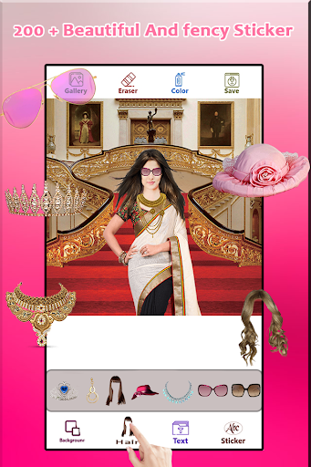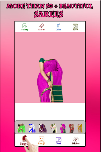 This saree photo editor has large collection of wedding saree photo suit.You can cut your face precisely using smart cutter of woman saree photo editor.Later you can set faces to saree photo frame using saree photo editor for girls.