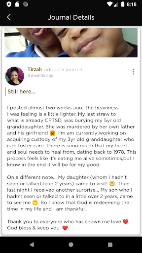 - each journal entry can be posted privately or publicly. Use this to go deeper with your supporters or with yourself.