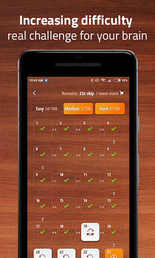 - increasing difficulty which means real challenge for your brain,