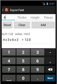 A person want to buy some wood in wood store. That time the store keeper calculate some calculation for finding wood square feet. the store keeper keeps breath X thickness X height X No of Pieces in get all in inches after he try to divided by 144 he will get sq. Ft.. using this app any one can make the calculation for that.