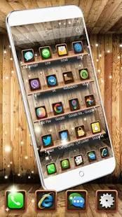wooden shelf launcher theme and wooden touch icon pack