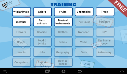 - in the full version : more than 600 different words to find amongst 28 categories , this free version offers 8 categories