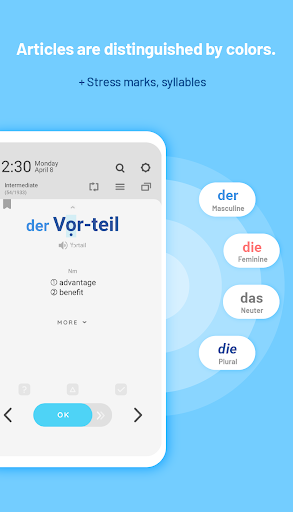 You can study words and phrases adapted to your level. (More than 10,000 words from basic to advanced)