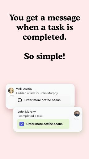 When your contacts complete a task you'll receive a message, keeping you up to date with ease.