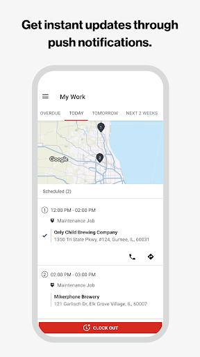 Verizon Connect Work’s Work Mobile app lets technicians in the field receive job details and share notes, photos and signatures with admins in the office.