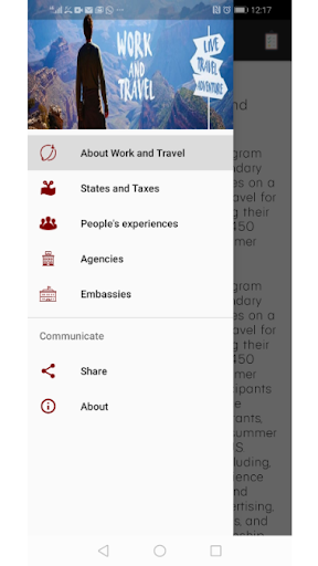 this app was created to explain the main points of work and travel program in the usa, and it contains so much useful information about the program such as, the documents you must prepare , the cost of the program , the place of each embassy and the contact info of each one , also each student who went there in previous years can post their experience and talk about it , also it contains a list of all the american states and the tax of each state , also the application provided a list that the student must check it before he travel to the usa , to ensure that he got all the documents that he will need out there