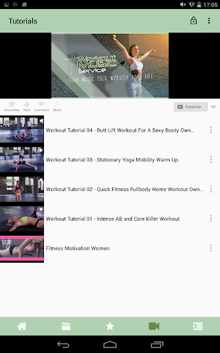 The best workout music service now in your pocket! Weekly updated workout music videos and workout music playlists in your workout music app. Watch our exclusive tutorials, tag them as favorites and share it with your friends. Create individual playlists and start your activity with the best training music for your running, pumping, cycling, gym and cardio workout.