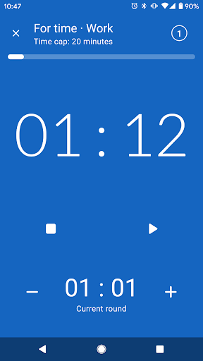 - Round counter for the FOR TIME and AMRAP modes so you can keep track of how many rounds you have done so far (no need for poker chips anymore) and the split times for every round.