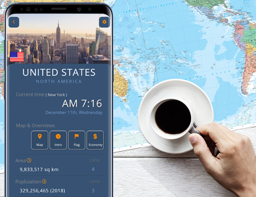 This World Atlas Plus includes more information like world map, world clock, world country rankings and world news.