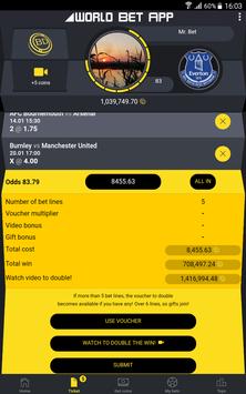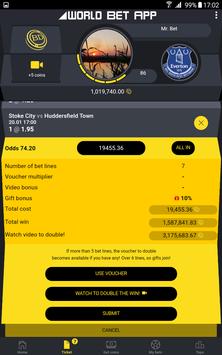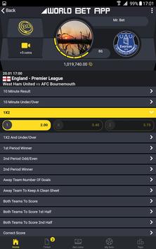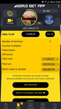 Wins made while betting in World Bet App can't be exchanged into real money or real rewards.