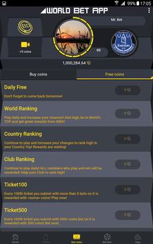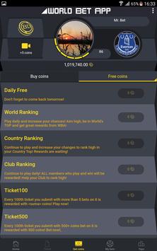 Be the first in your Country and do your best to be number one in the weekly Country Competitions! Rank high and enjoy the free Betting Dollars rewards from World Bet App!